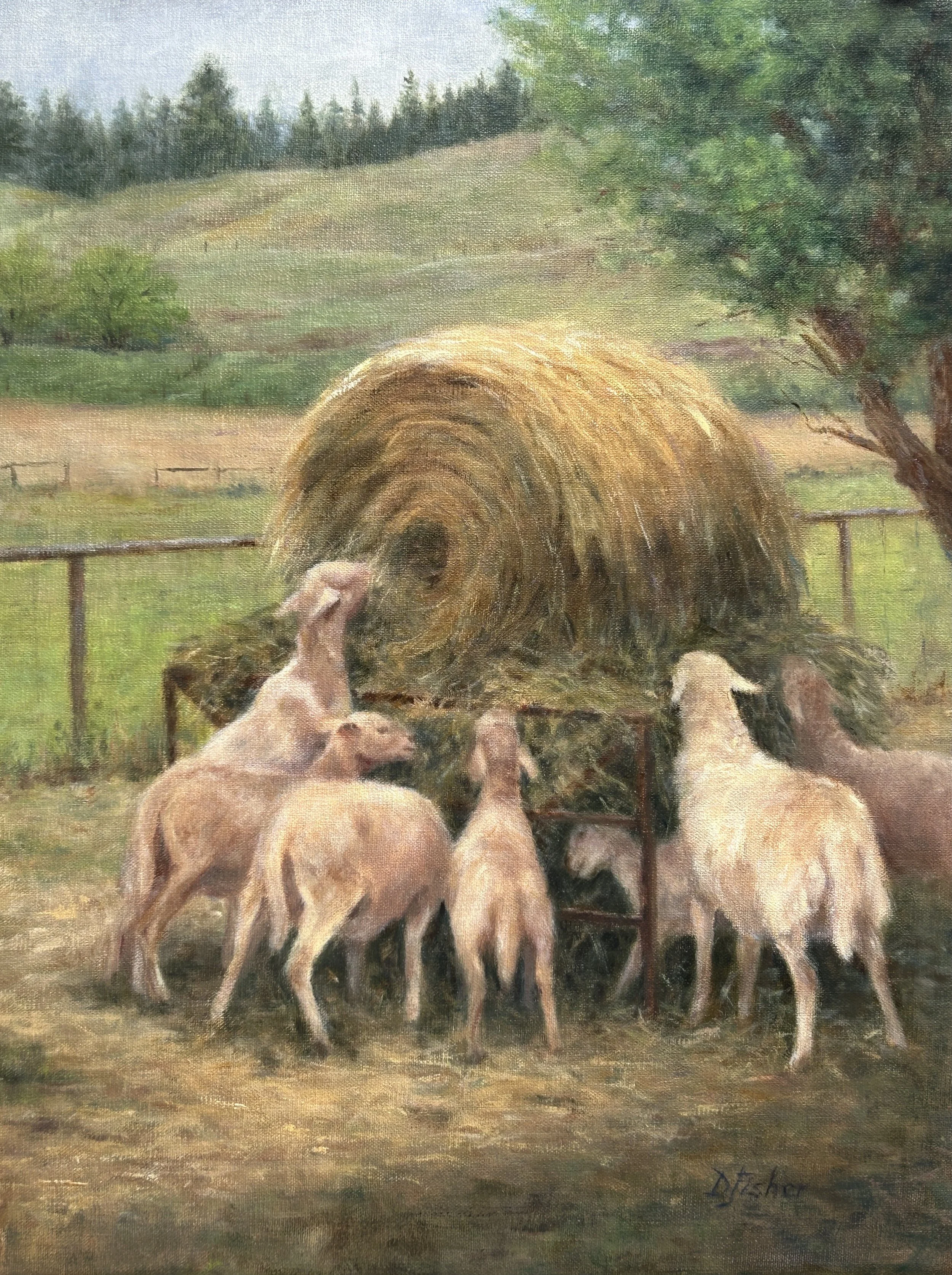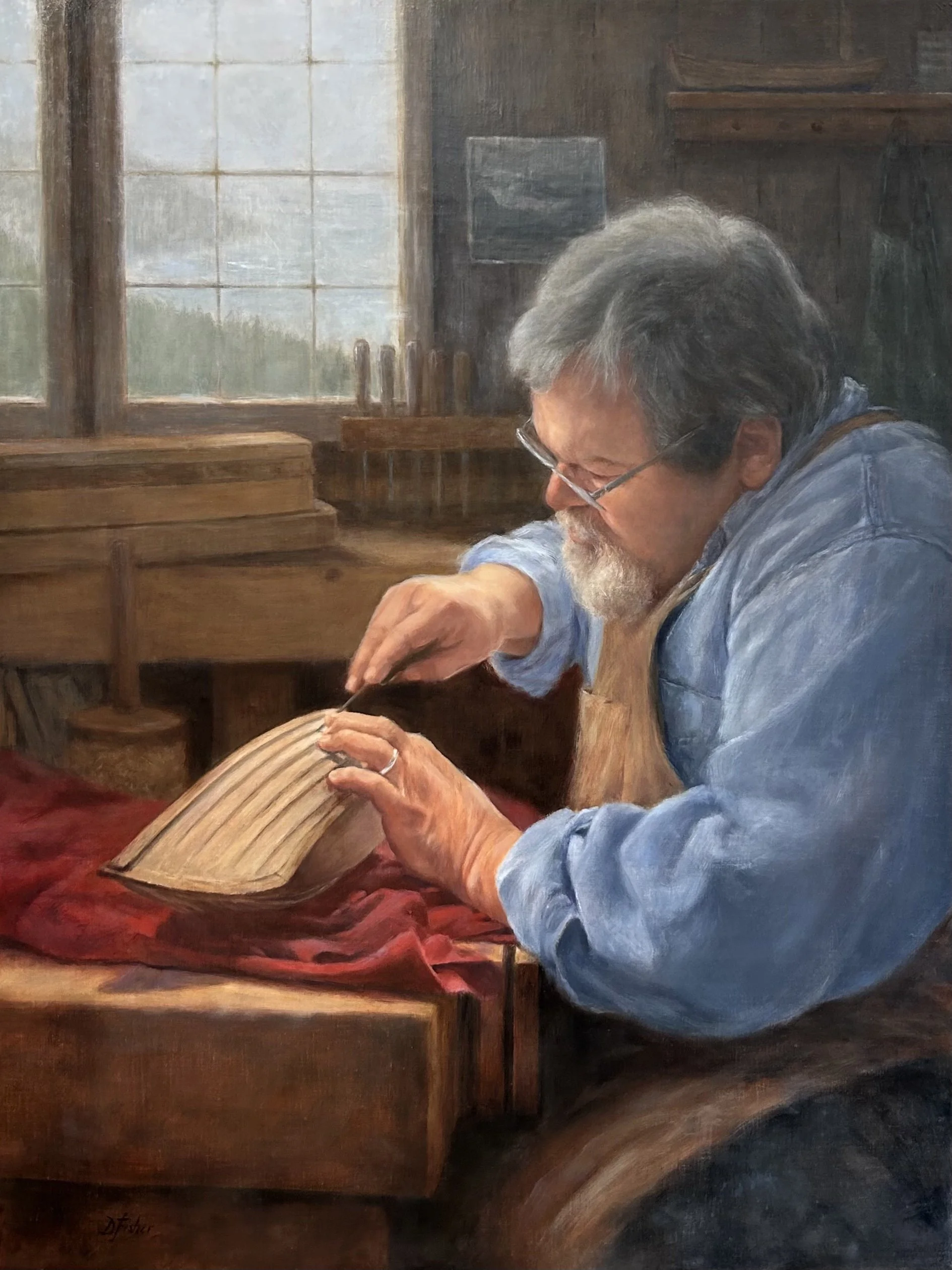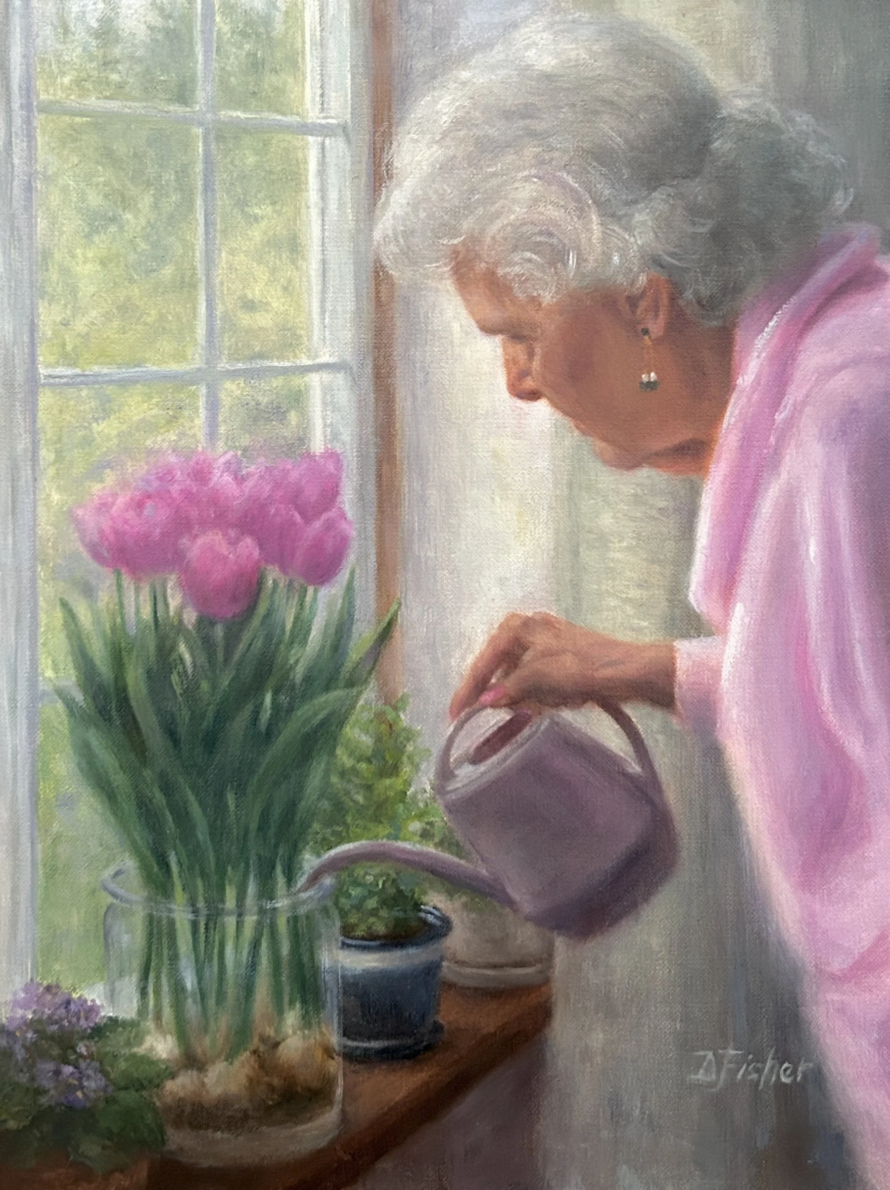 The Vault Presents:Debby Fisher "Tending the Garden" Oil 9x12 $350 "Lunch Date" Oil 12x16, $400 "The Boat Carver" Oil 18x24 $1000